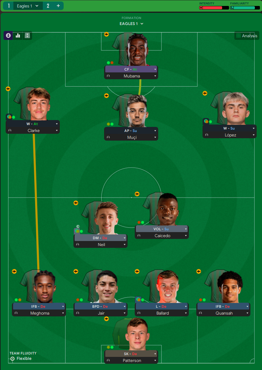 We didn’t really have a strong enough set of defensive midfielders who could hold position to allow full backs to push forward so we altered the tactic to have the full backs sitting and one of our defensive midfielders set to support going forward in the Segundo Volante role.